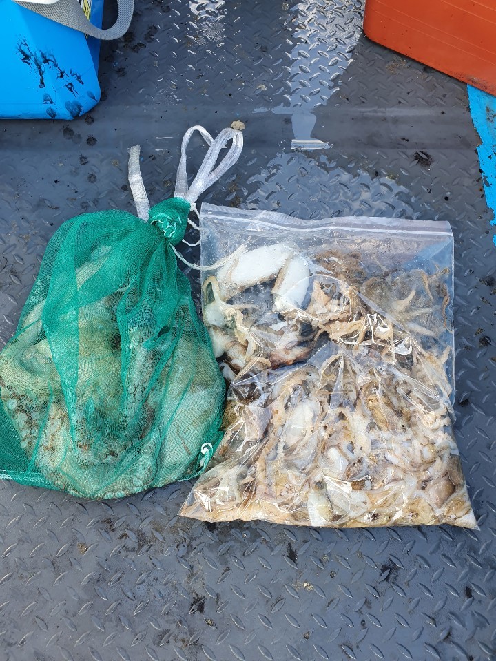 잡았네요 오늘 주꾸미는 씨알은작지만
